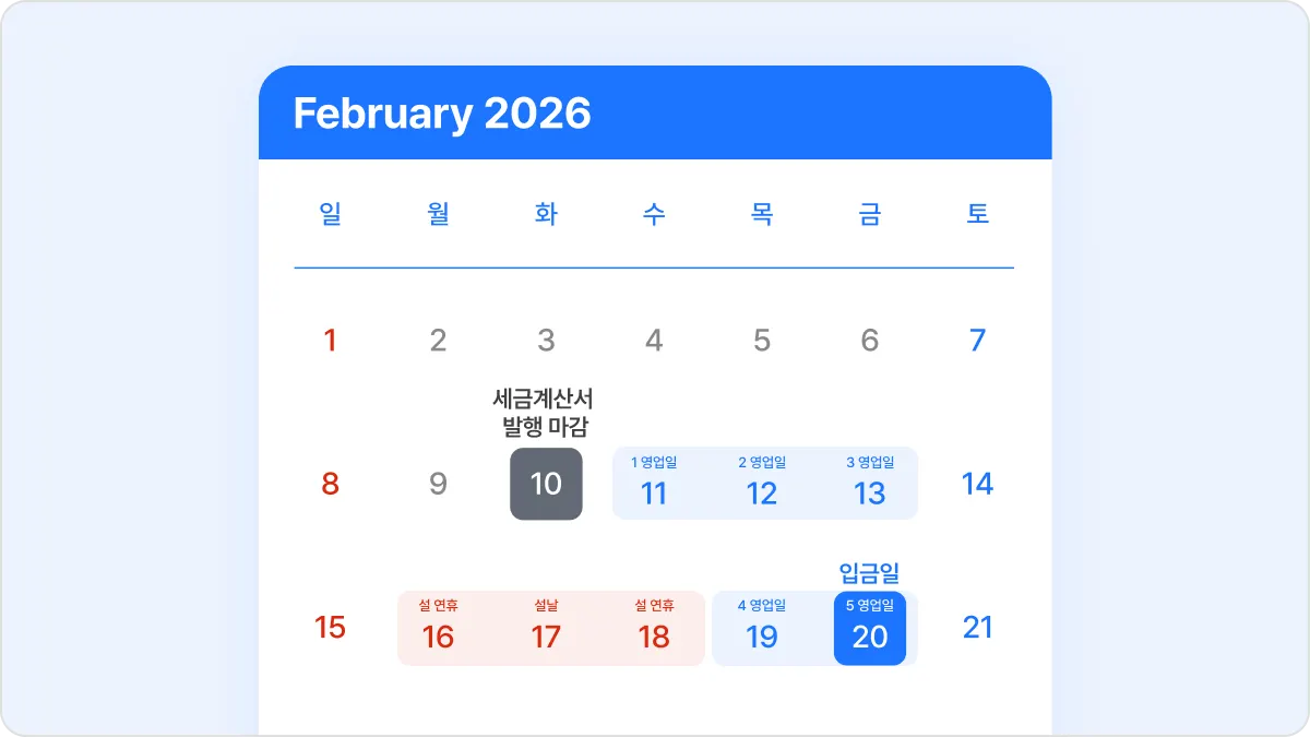 오직 입금일만 앞당겨졌습니다. 매월 10일 이후 5 영업일째에 정산 금액이 입금되니, 더는 기다림이 길게 느껴지지 않을 거예요.
