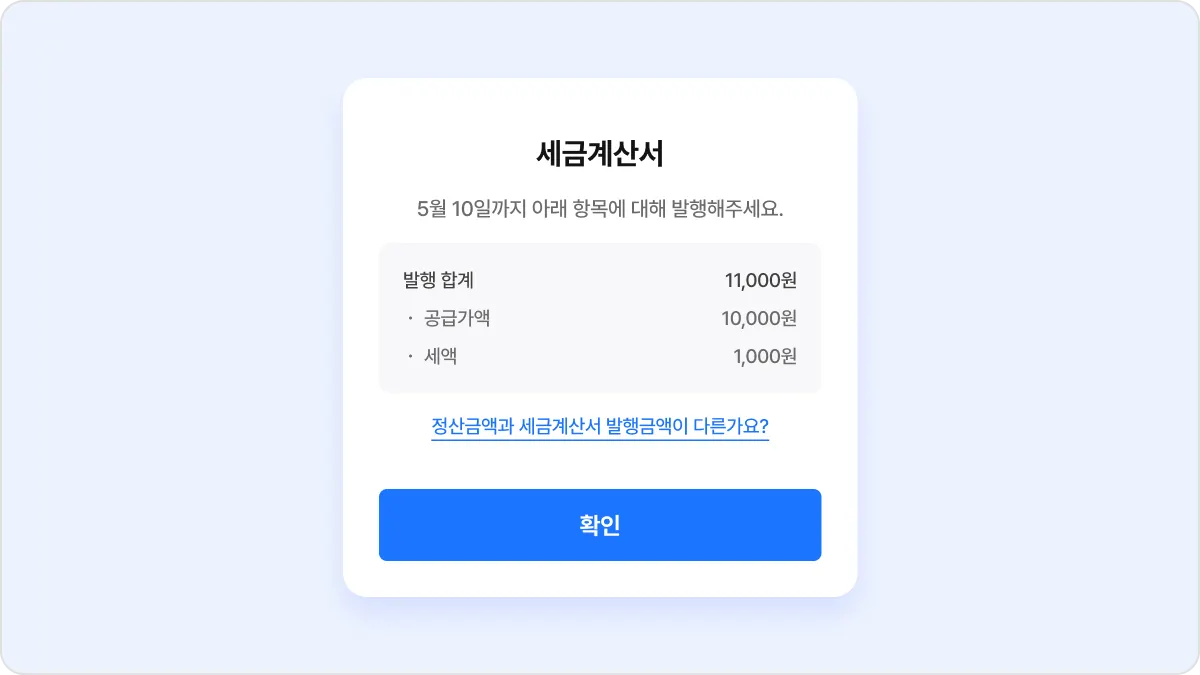 사업자 크리에이터의 경우 정산을 위해선 세금계산서가 필요합니다. 하지만 어떤 상품 유형이냐에 따라 크리에이터가 세금계산서를 발행하기도, 발행받기도 합니다. 또한, 세액 계산도 다를 수 있죠. 결국, 세액을 계산하는 게 어렵다는 피드백이 종종 있었습니다.