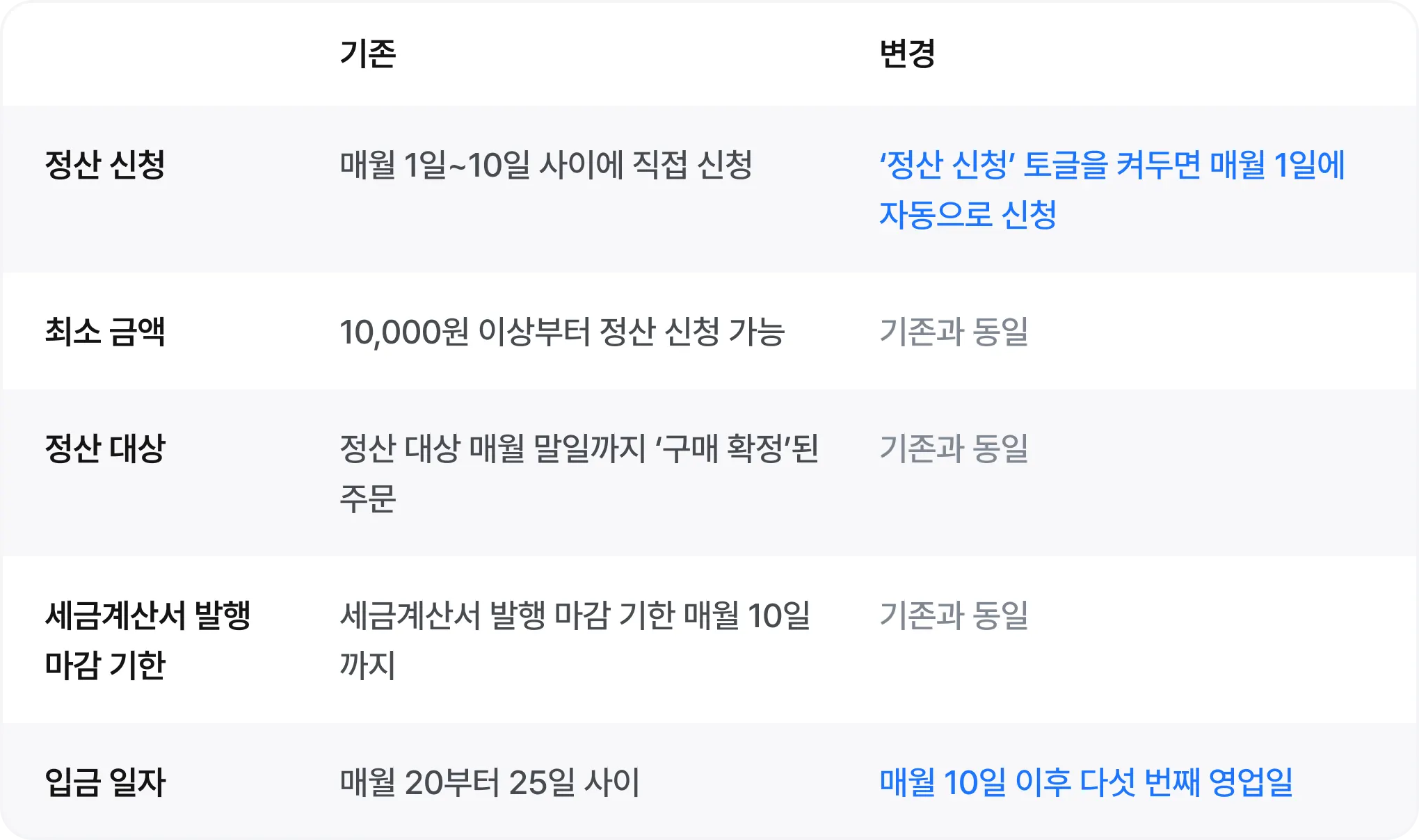 💙 정산 기능 및 정책 개선 예정