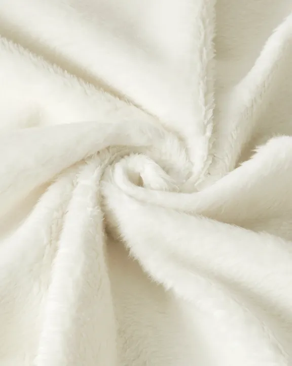 This blanket is made of velboa fabric, known for its soft and smooth texture.