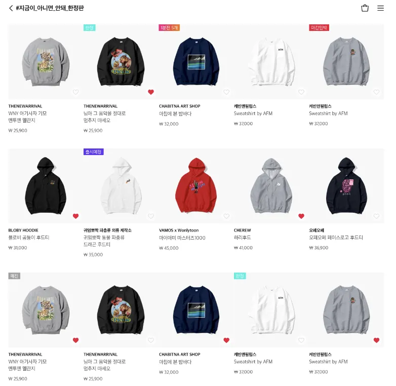 다만 아래는 기본으로 보여질 수 있는 갯수가 너무 적어보여요. 가로 7개 정도 들어가는 사이즈로 최대 14개까지는 2단으로 보일 수 있고 15개부터는 13개보여주고 펼치도록 해보면 좋겠어요.