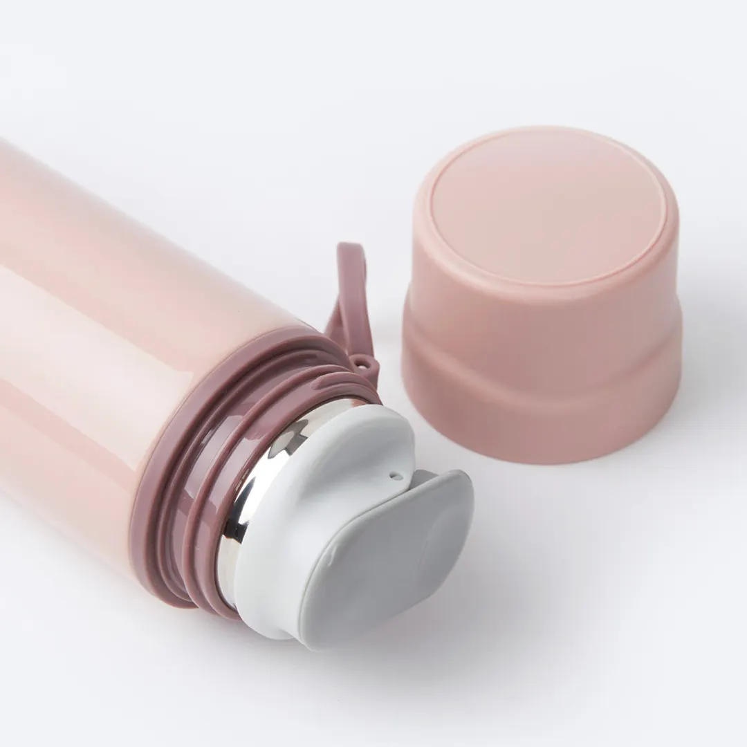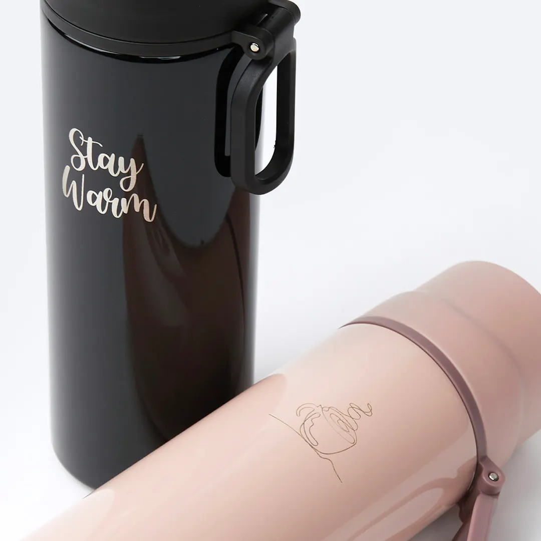 It is a simple design thermos that can be used as a cup by opening the top cap.