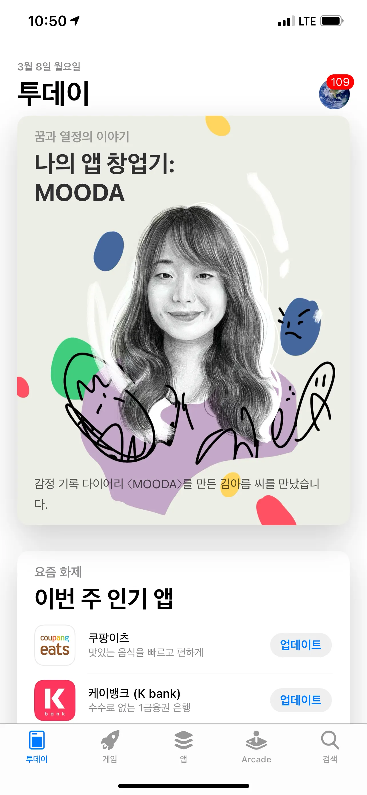 쇼핑탭이 상품이 아니라 홈|투데이|상품|셀러를 포함하는 화면이자, 앱 최초 진입시 선택된 탭이다.
