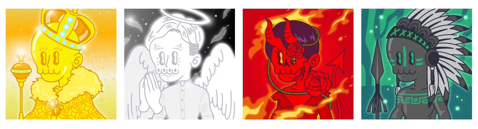 레전더리(Legendary)는 NFT PFP 프로젝트에서 가장 희소한 NFT를 말합니다. 통상적으로 파츠의 조합으로 렌더링한 프로필 이미지가 아닌 하나의 그림입니다. 이래 이미지처럼 말이죠.