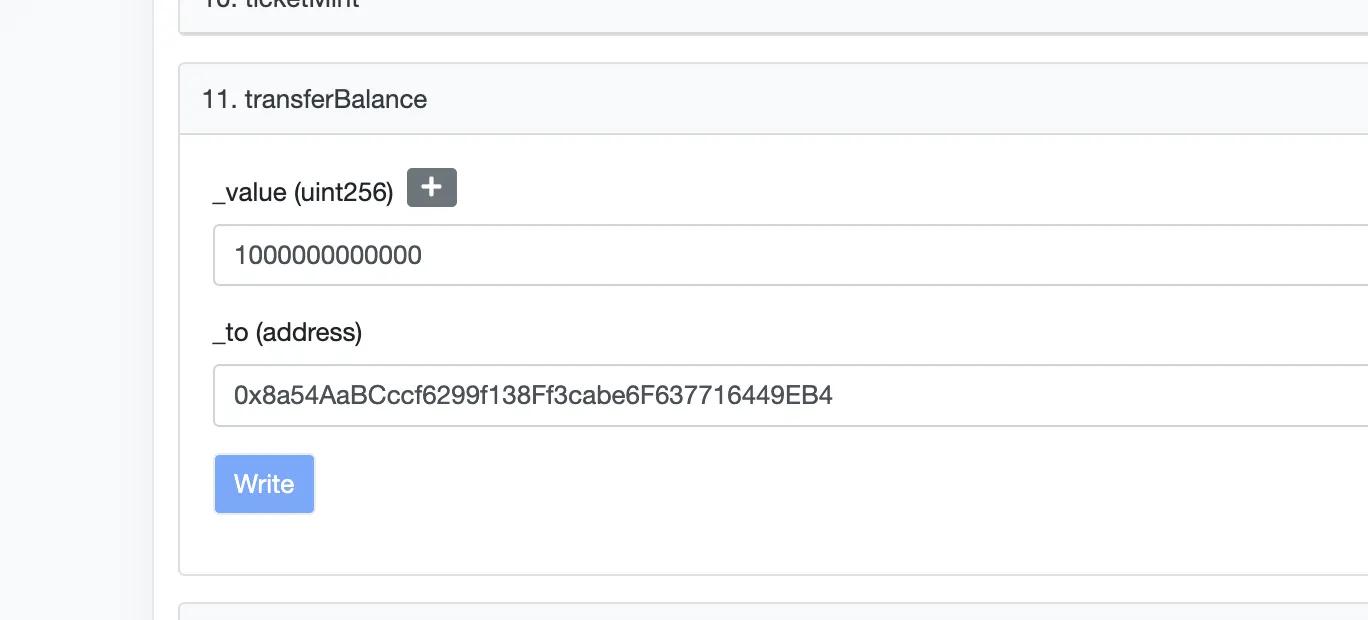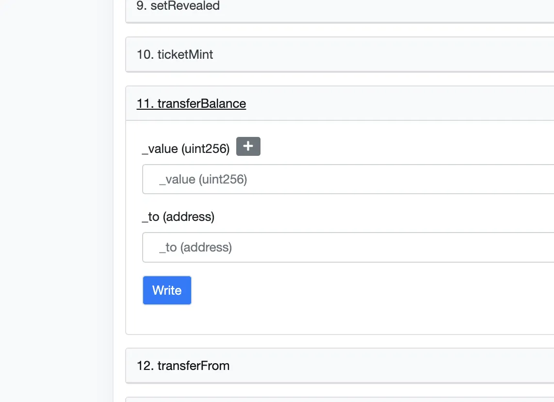 수많은 메뉴 중에 transferBalance 메뉴를 찾아 클릭해 주세요.