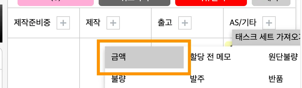 1. DF 내 주문서 > [AS/기타] > [태스크 세트 가져오기] > [금액] 태스크 생성
