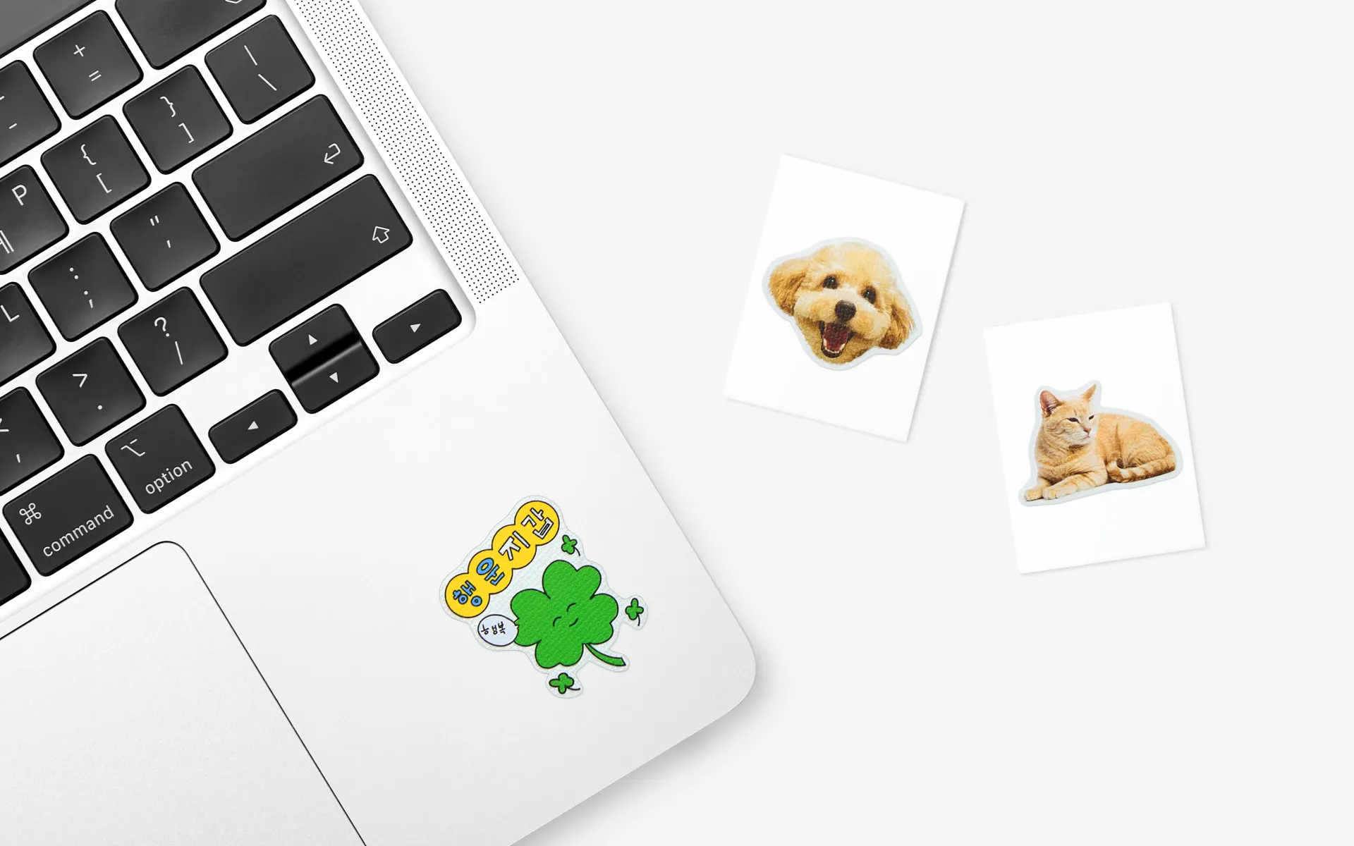 띠부 스티커 에디터에서 원하는 이미지를 업로드하면, 자동으로 이미지에 맞는 칼선을 생성해 별도의 편집 없이 손쉽게 스티커를 제작할 수 있습니다.
