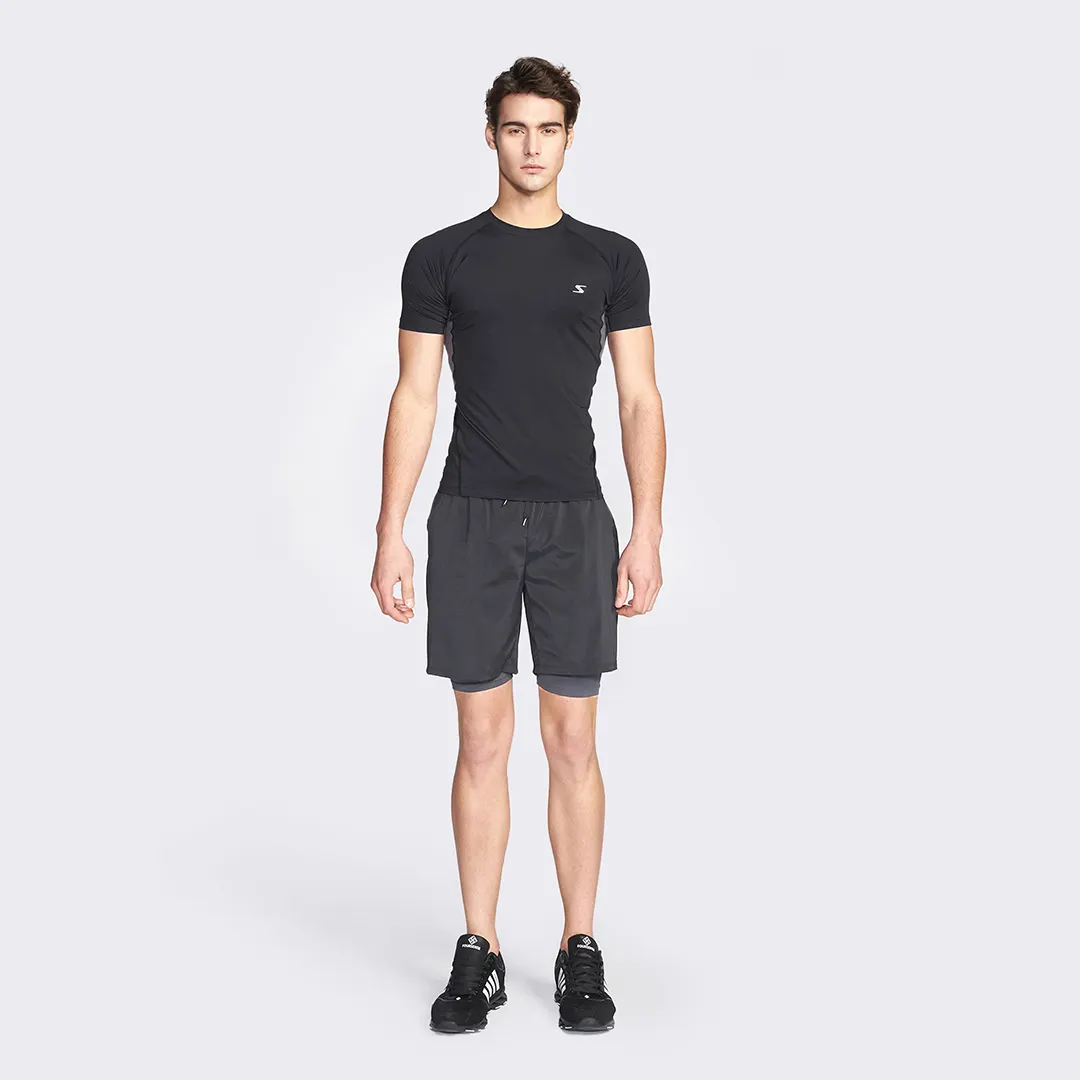 Pants made by integrating mash leggings and woven shorts.