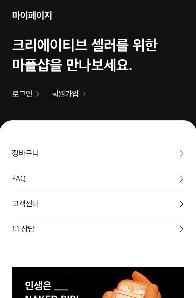 아니면 로그인이전 화면이랑 비슷한데 검정 바닥이 점 강해보이면 회색라운딩 느낌도 통일성 있을것 같아요.