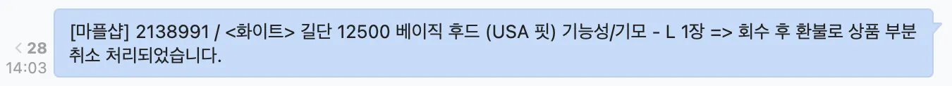 [개별 주문서] 카카오워크 환불방에 양식에 맞춰 기재 후 전달(주문번호-상품부분취소 띄어쓰기X)