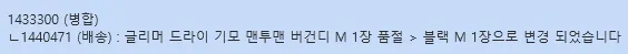 ※ 상품 변경 중 추가금이 발생하는 경우 (예: 2070889 XL → 2XL)