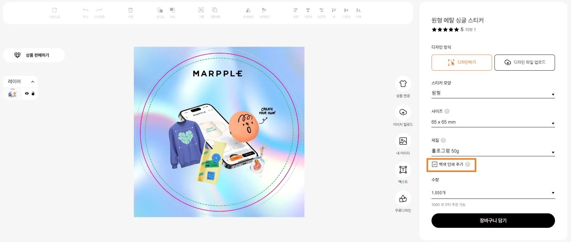 기존에는 파일 업로드로만 제작 가능했던 싱글 스티커에 직접 디자인할 수 있는 만들기 툴 기능이 추가되었습니다!또한, 대량의 스티커를 편리하게 보관할 수 있는 롤 스티커 상품도 만들기 툴로 제작 가능합니다. 다양한 디자인 옵션을 활용해 개성이 담긴 맞춤형 스티커를 손쉽게 만들어보세요.